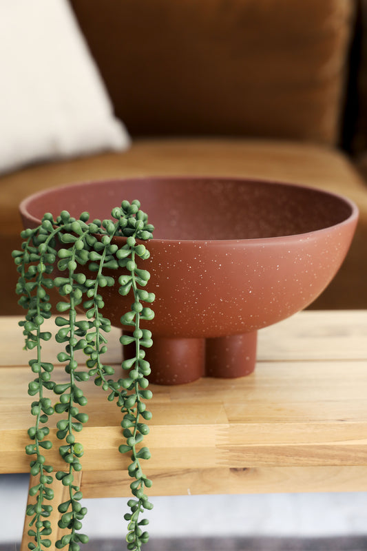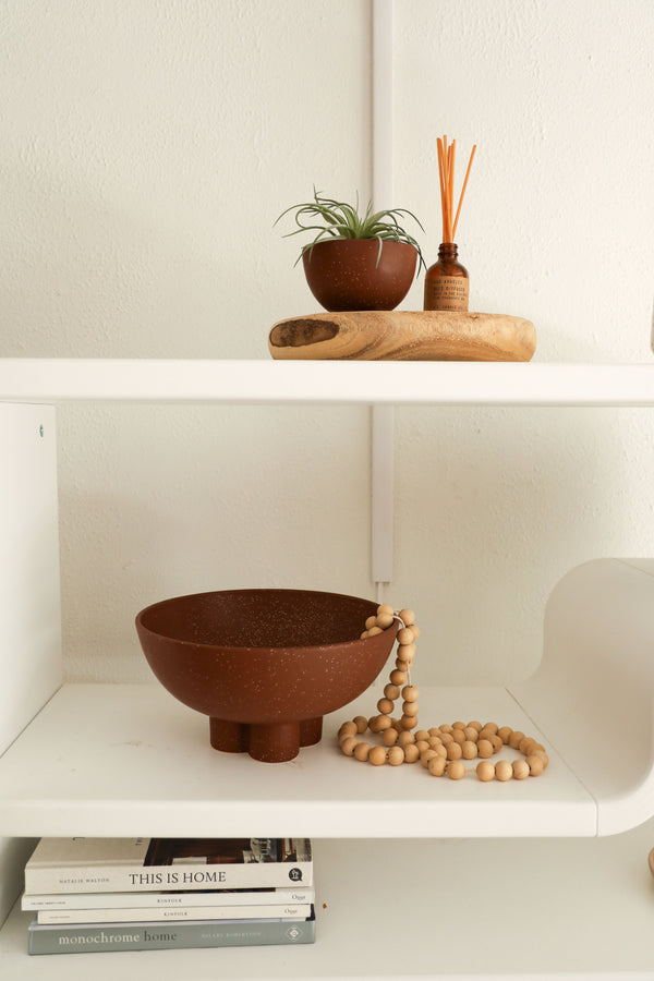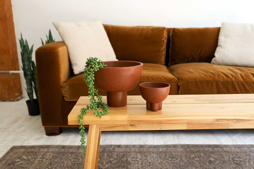 Designed with warm mid century colors, matte speckled glaze, and minimalist shapes to promote gathering and energy.